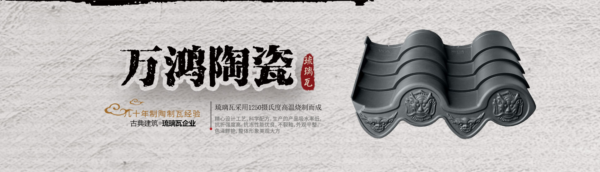 宜興市萬(wàn)鴻陶瓷有限公司是國(guó)內(nèi)生產(chǎn)古建琉璃瓦企業(yè),也是宜興市琉璃瓦行業(yè)龍頭骨干企業(yè)。琉璃瓦采用1250攝氏度高溫?zé)贫?,公司座落?jīng)濟(jì)發(fā)達(dá)的宜興市丁山鎮(zhèn),臨近寧杭高速公路、新長(zhǎng)鐵路、錫宜高速和104國(guó)道,交通十分便利。 萬(wàn)鴻陶瓷擁有幾十...